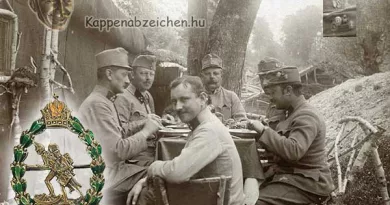 A viselési fotón az ezred ismertebb, zománcos jelvényét tűzték a tábori sapka elejére, a két gomb közé. A sapkán oldalt Frigyes főherceg, hadsereg főparancsnok jelvénye látható.