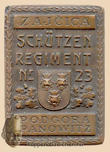 In addition to the coat of arms of Dalmatia, the badge also features the name of Podgora, which commemorates the battles in Görz. Panowitz was a village near the middle course of the Isonzó. Desperate battles took place here in August 1916 during the 6th battle of Isonzo. The interpretation of the name Zajcica is still to be seen. Such geographical names also occur in Slovenia and Serbia, I have not been able to find the Dalmatian equivalent. I have already written about the regiment’s other badge here.