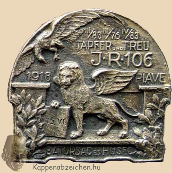 Ezt az ezredet nyugat-magyarországi zászlóaljakból állították fel az 1918-as átszervezéskor. Főleg a 83-as gyalogezred állományából kerültek át ide sokan. Az ezred parancsnoka Lehár Antal ezredes volt, a zeneszerző Lehár Ferenc édestestvére. Közismert egy fotó, amelyen az ezredparancsnok látható, kezében a tábori sapkán a 106-os ezred jelvényével. Ezt a jelvényt itt már bemutattam.