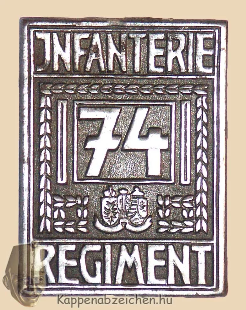 A 74-es az egyik szudétavidéki gyalogezred volt. Parancsnoksága és egyik zászlóalja Jicinben, további két zászlóalj Reichenbergben állomásozott. Vegyes cseh és német anyanyelvű legénysége volt. A 29. gyaloghadosztályba volt besorolva, amely a háború kezdetekor a XIV. hadtest része volt, de később ez a besorolás gyakran változott. A Nagy Háborúban 1918-ig végig a keleti fronton voltak bevetve. Ez látszik a bejegyzéshez felhasznált tábori levelezőlapon olvasható csatahelyeken is. A lap érdekessége a felhasznált szín is, ami az ezred hajtókaszínével megegyező vörös.