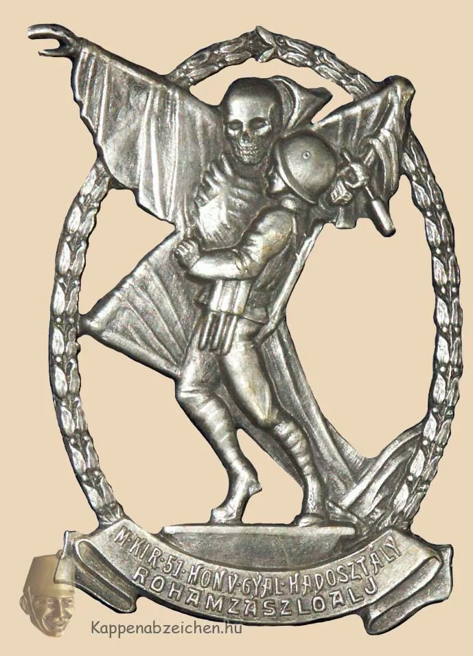 Az 1918 végi, 1919 eleji ellenállásban részt vevő csapatok frontokat megjárt katonái szívesen hordták a világháborús jelvényeiket. Ezek a jelvények sok esetben még a Kommün haderejében is megmaradtak. A rangjelzéseket, sapkarózsákat ugyan leszedték illetve vörös csillaggal helyettesítették, de a háborús érdemekre emlékeztető jelvények megmaradtak. A bejegyzéshez mellékelt képen az 51. honvéd hadosztály rohamcsapatának jelvényét viselik a Kommün katonái. Ezt a jelvényt korábban már bemutattam itt.